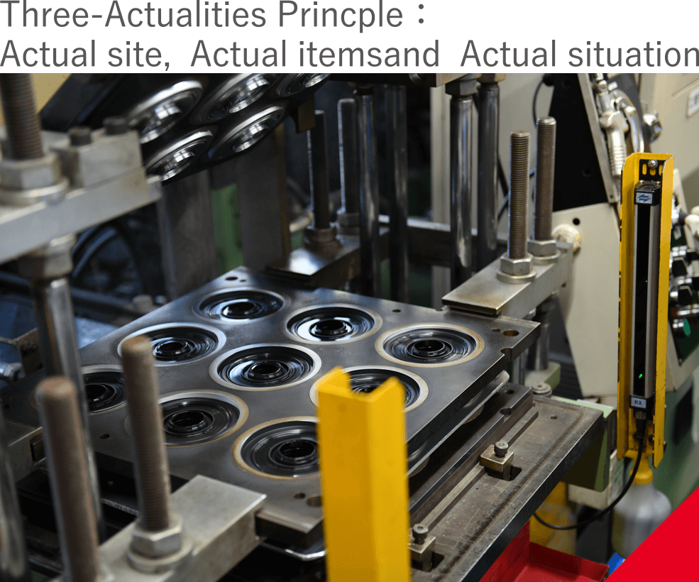 observing the actual items in the actual site and recognizing the actual situation, not on the desk.